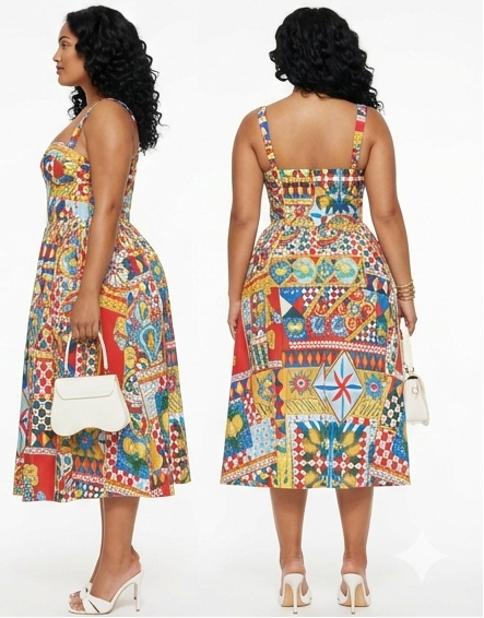 Step into effortless summer elegance with the Roman Summer Poplin Midi Dress, a vibrant and feminine piece designed to turn heads wherever you go. Featuring a colorful statement print and a flattering midi silhouette, this dress blends playful charm with timeless sophistication, making it perfect for vacations, brunch dates, garden parties, and warm-weather events.
